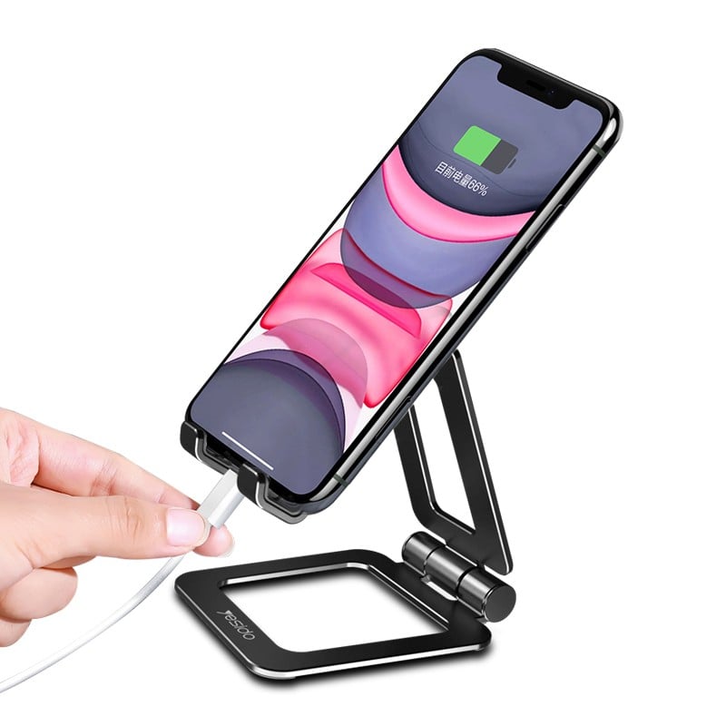 Foldable design, easy to carry in your bagThis phone stand is made of Aluminum Alloy + SiliconAngle and height can be adjusted according to your prefe...