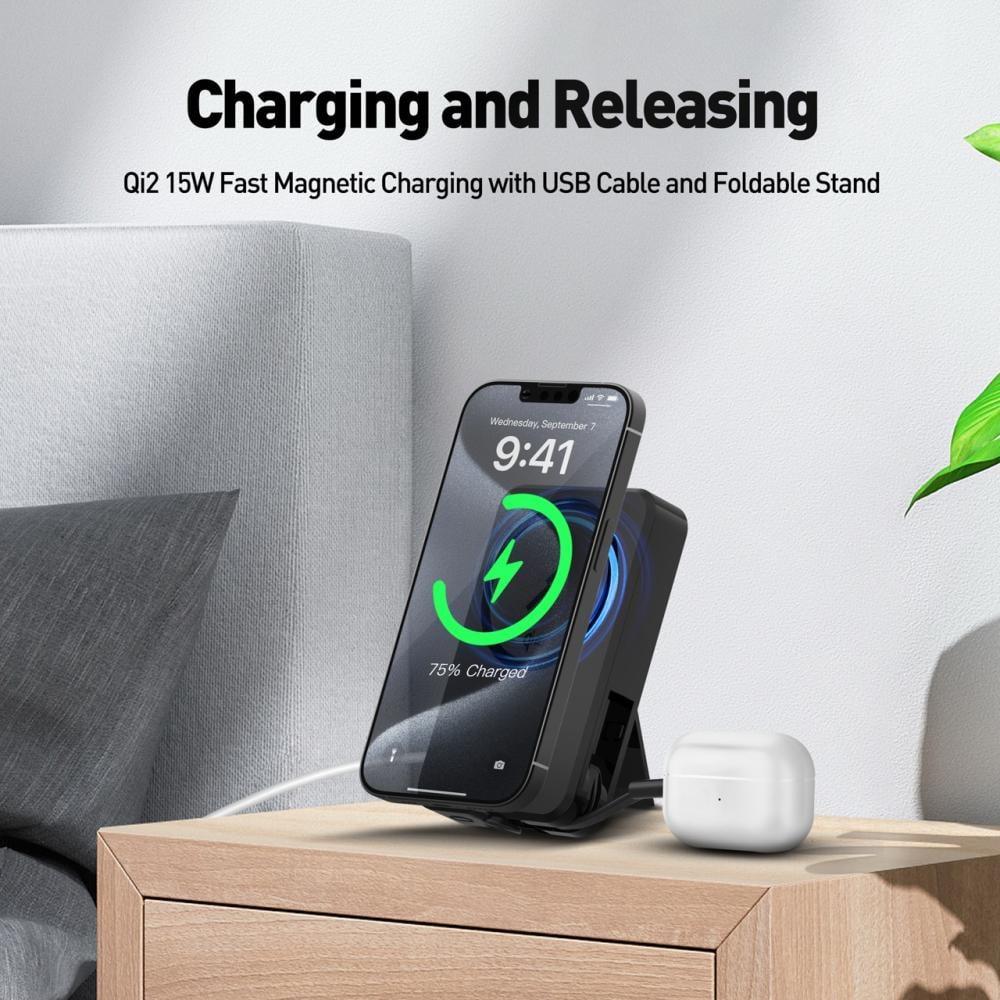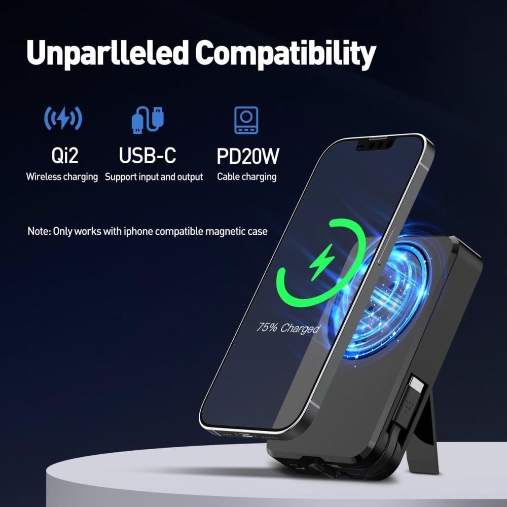 بطارية متنقلة JODA MaqQ بسعة 10000 ملي امبير وشاحن لاسلكي بقوة 20 واط منفذ تايب سي مع سلك مدمج تايب سي