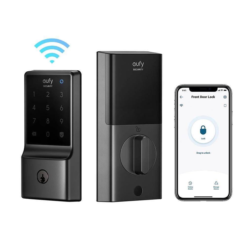 تحكم من أي مكان مع واي فاي مدمج: لا حاجة إلى جسر, يمكنك التحكم في القفل الذكي من أي مكان عبر تطبيق يوفي سيكيوريتي سهل التركيب. (إدارة الوصول، الإخطار ...