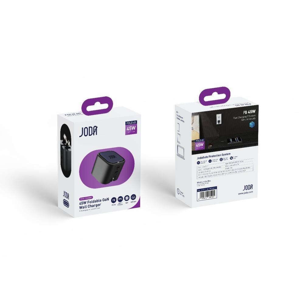 جودا - فيش حائط متعدد المداخل 45 واط مزود بتقنية جان - اسودوصف المنتج: يقدم شاحن الحائط جودا فولد 45 (JODA FOLD 45) قدرة شحن تصل إلى 45 واط، مما يسمح ...