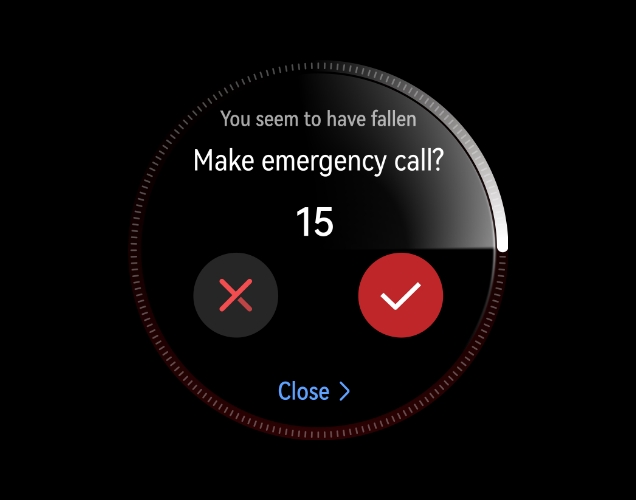 أنت في أيدٍ أمينة. تستخدم ميزة كشف السقوط مستشعر IMU طويل المدى لاكتشاف السقوط وإرسال طلب النجدة أو طلب المساعدة10 تلقائيًا إلى جهات الاتصال المختارة بعد تأكيدك.8