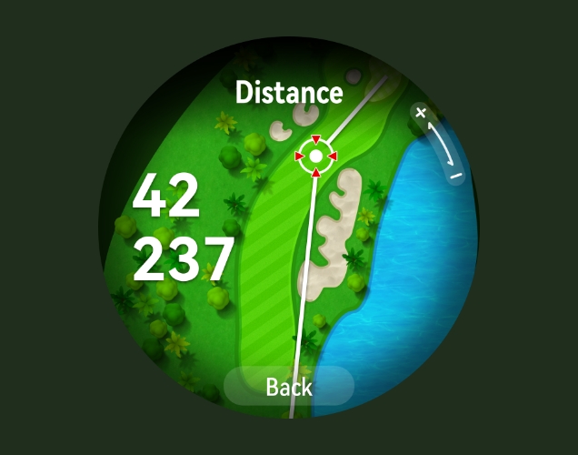 تتبع المسافة بنقرة واحدة. توفر الساعة قياسات دقيقة في الوقت الفعلي للعوائق، بالإضافة إلى معلومات عن مقدمة المنطقة الخضراء ووسطها وخلفها للتخطيط الاستراتيجي.
