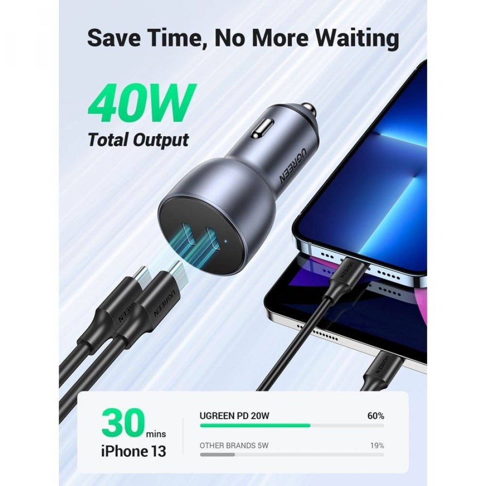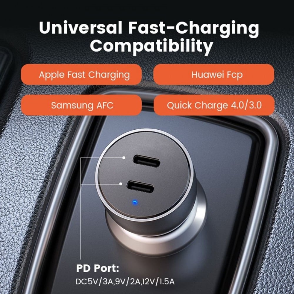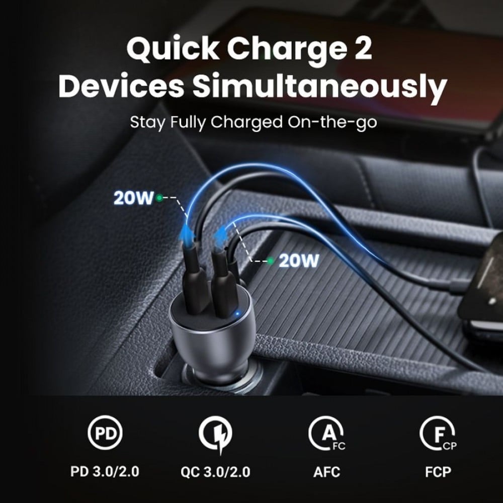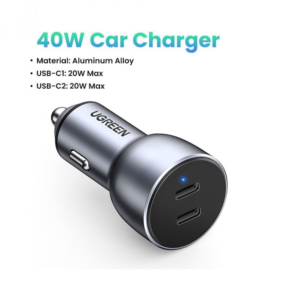 يوجرين شاحن سيارة بمنفذين PD وبمجموع القوة 40 واط - رمادي
