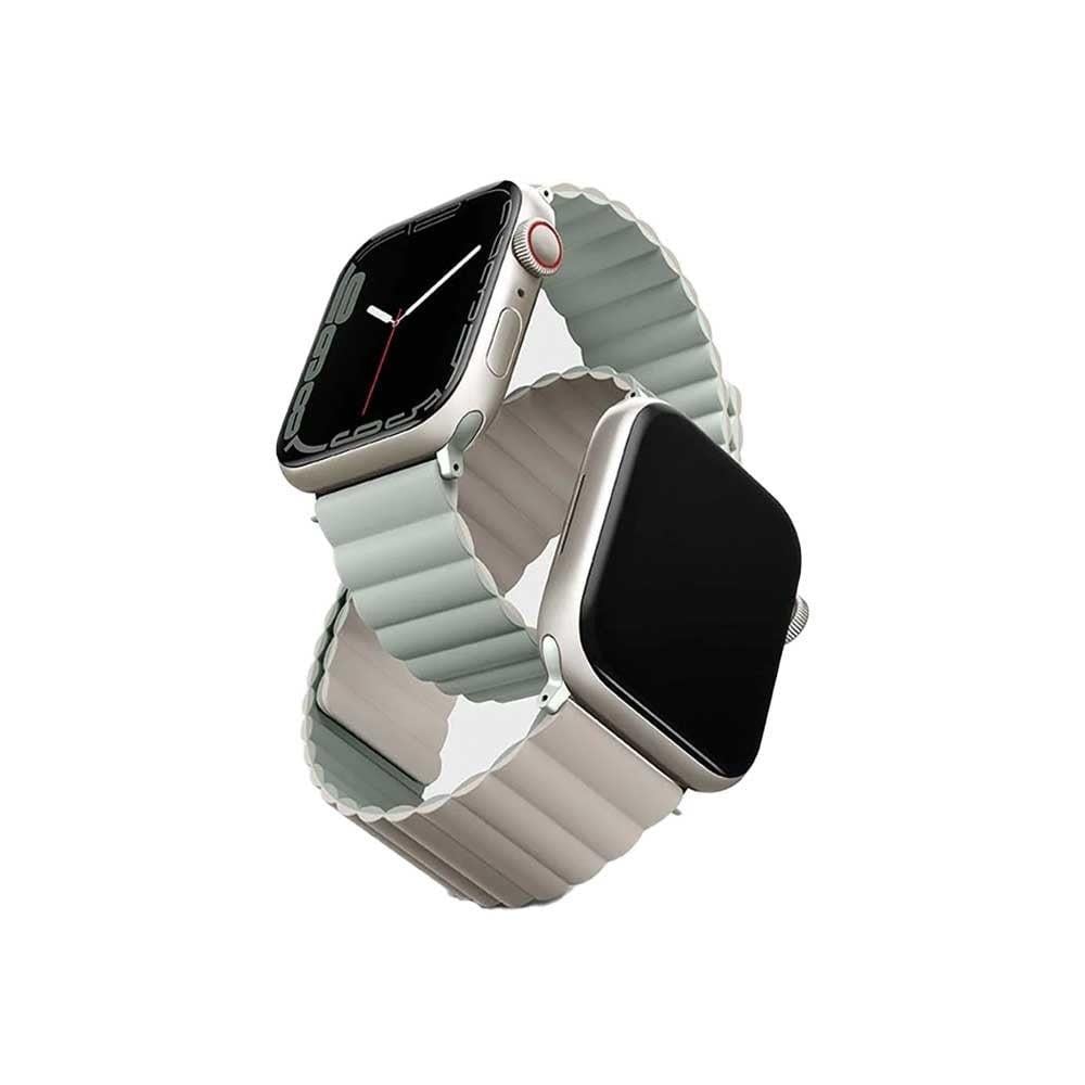 يونيك - سوار مغناطيسي لساعة ابل ريفيكس مقاس45/44/42 مم - اخضر فاتح مع بيج