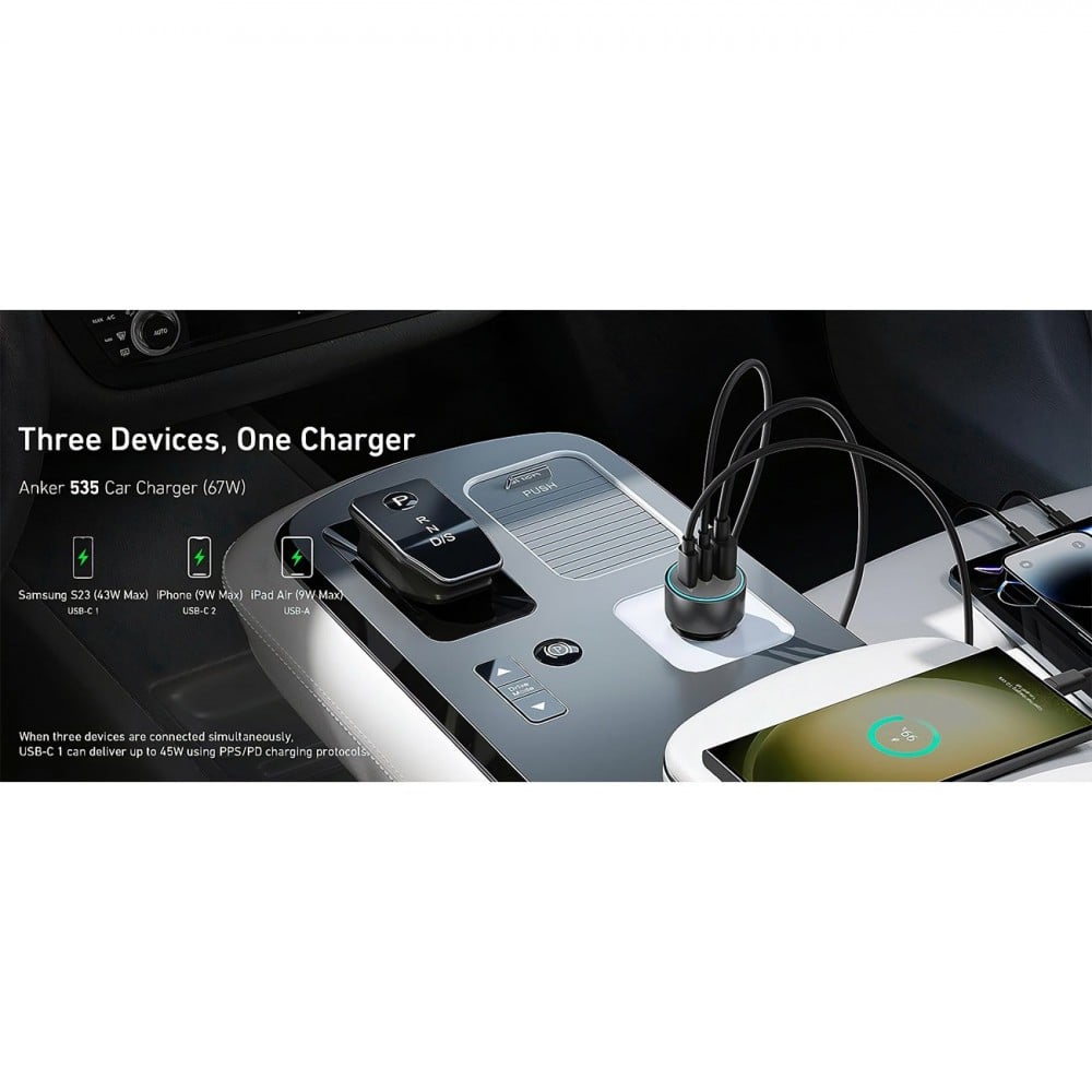 انكر شاحن سيارة 335 بقوة 67 واط -2 تايب سي +1 يواس بي- اسود