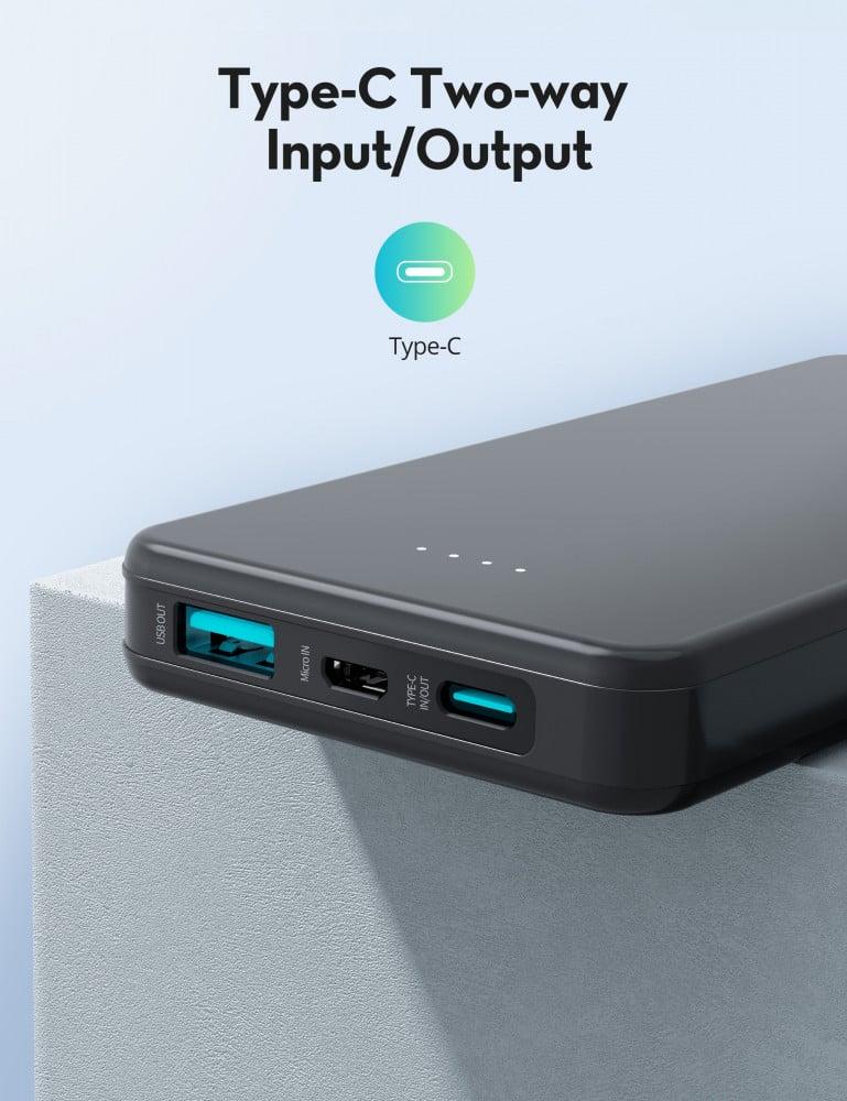 بطارية راف باور 10000 ملي امبير بمنفذ تايب سي ومنفذ مايكرو ومنفذ USB بقوة 15 واط